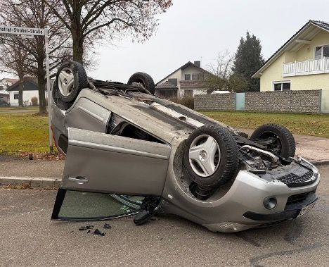Dort lag ein PKW nach einer Kollision zweier Fahrzeuge auf dem Dach. Glücklicherweise wurde keine Person im Fahrzeug eingeschlossen.